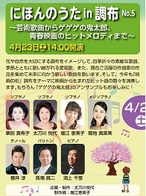 「にほんのうた in 調布 No.5」~芸術歌曲からゲゲゲの鬼太郎、青春映画のヒットメロディまで~2022年4月23日(土) 13:30開場/14:00開演