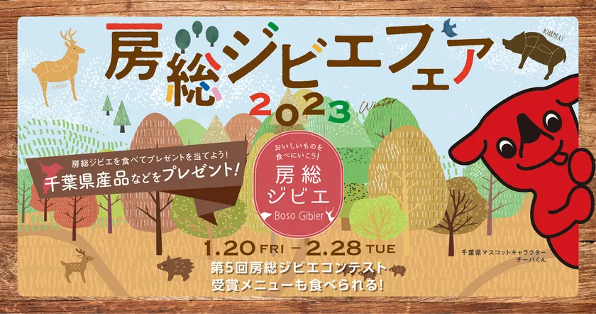 合計100名に千葉県産品などをプレゼント 「房総ジビエフェア2023」2/28まで開催中 ~おいしいをもっと手軽に!ジビエでSDGs~