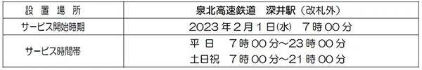 今回の深井駅への設置により、泉北高速鉄道では4駅(和泉中央駅、光明池駅、泉ヶ丘駅、深井駅)での展開となり、ますます便利にご利用いただけます。