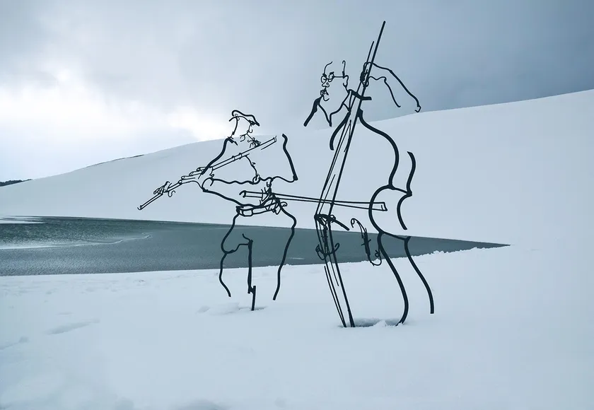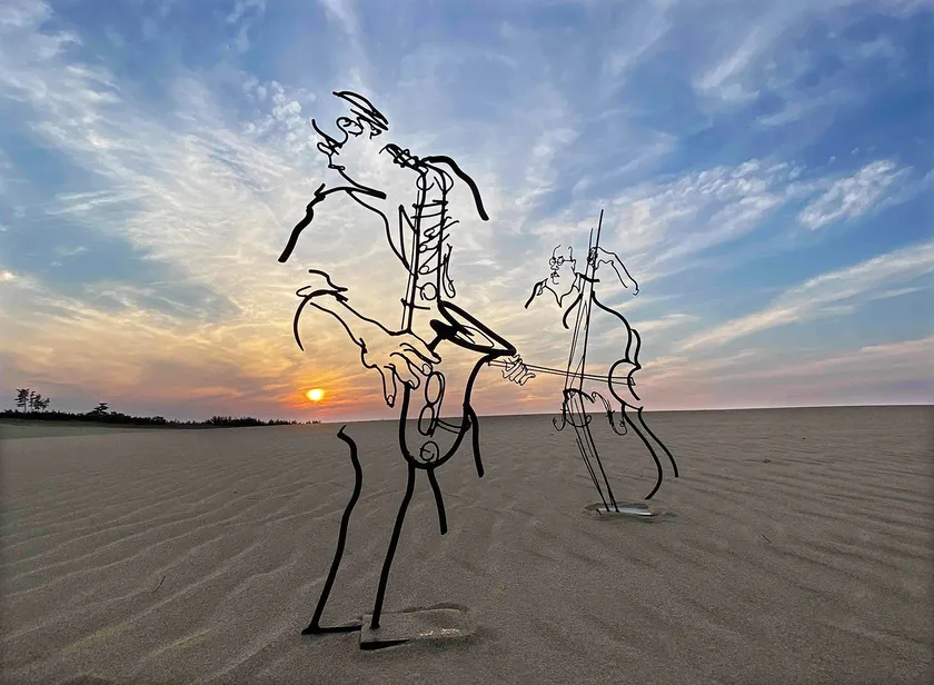 独自の手法による「鉄筋彫刻」でジャズの世界を構築するアート作家、徳持耕一郎。まるで音楽が聴こえてくるようなジャズのライブシーンを線でとらえた鉄筋彫刻はじめ、銅版画やイラストレーションも展示します。