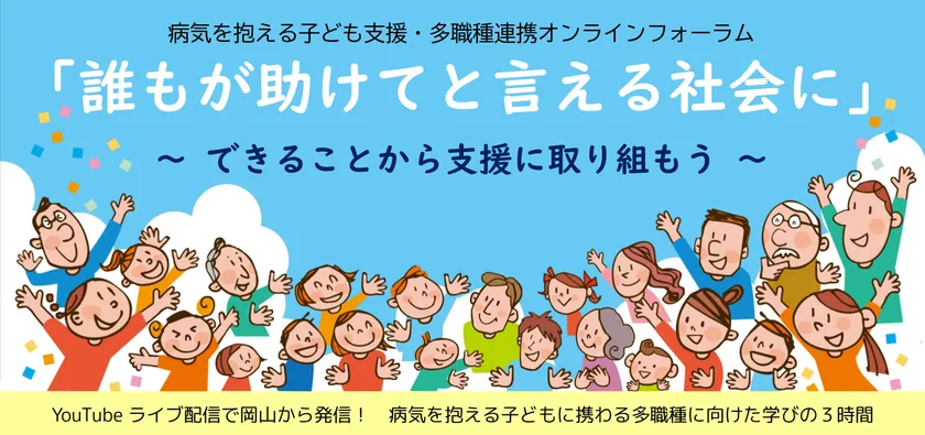 病気療養する子どもたちの学習や復学を支援する認定 NPO 法人ポケットサポート(所在地:岡山県岡山市、代表理事:三好 祐也、以下:当団体)は、病気を抱える子どもに携わる多職種と連携して支援を進めるため、2月26日(日)にオンラインフォーラム【「誰もが助けてと言える社会に」~できることから支援に取り組もう~】をYouTubeライブ配信にて無料で開催します。