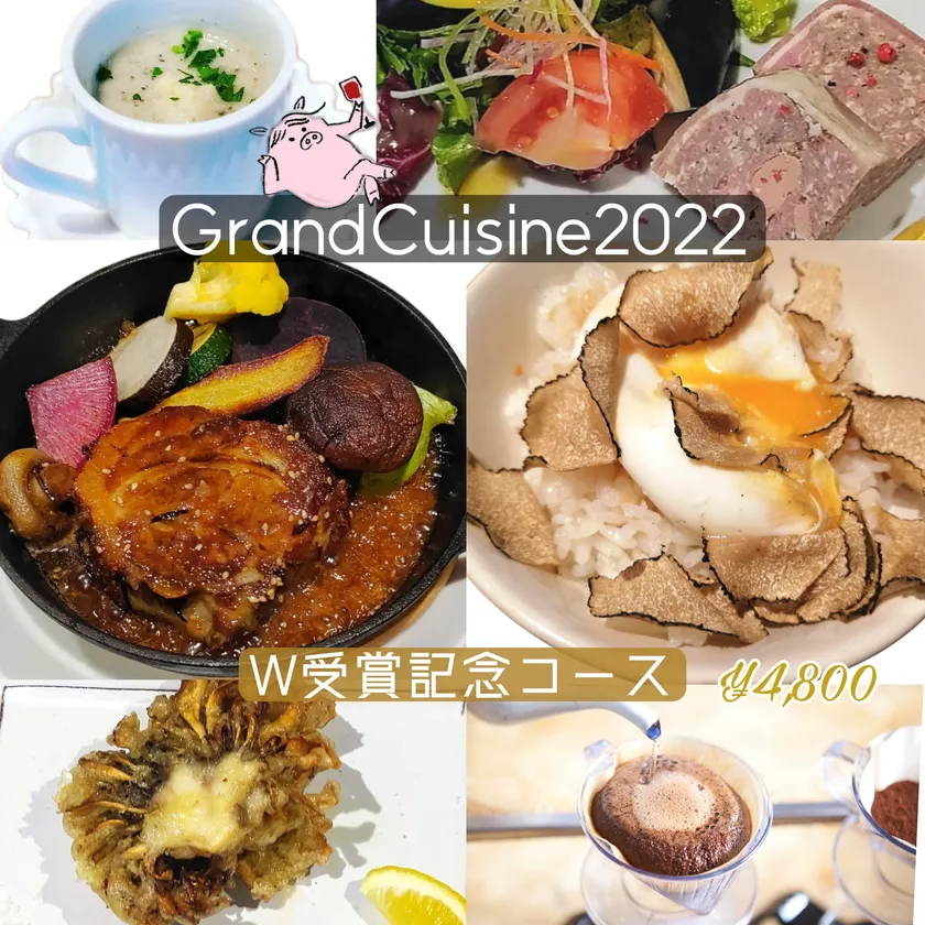 T-dining株式会社が運営する銘柄豚専門店「豚のひととき」は、全国のオーナーシェフが選ぶ絶品グルメ『Grand Cuisine 2022秋』で丼ぶり部門 金賞、肉料理部門 銀賞のダブル受賞いたしました。ダブル受賞を記念して、受賞メニューをお召し上がりいただける『W受賞記念コース』を特別価格¥4,800(通常価格¥7,350)にてご提供いたします。
