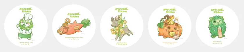 「おやさい妖精さん」は、元農家のイラストレーター・ぽん吉さんの「子供に少しでも野菜を好きになって欲しい」という願いから生まれた、野菜や果物と動物が融合したかわいい妖精のキャラクターです。