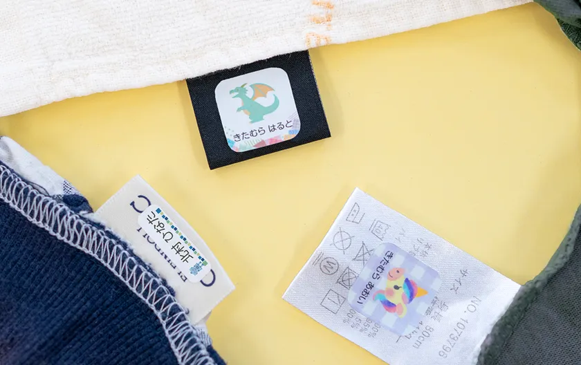今回追加する「衣類タグ用(ノンアイロン)」は、園生活の必需品である衣類の「洗濯タグ」にアイロンいらずで貼ることができる、時短を重視するお客さまからのご要望の多かった新メニューです。洗濯タグの他、ポリエステル100%の布に直接貼ることができます。洗濯が必要な衣類へのお名前つけが、手間をかけずにスピーディに完了します。