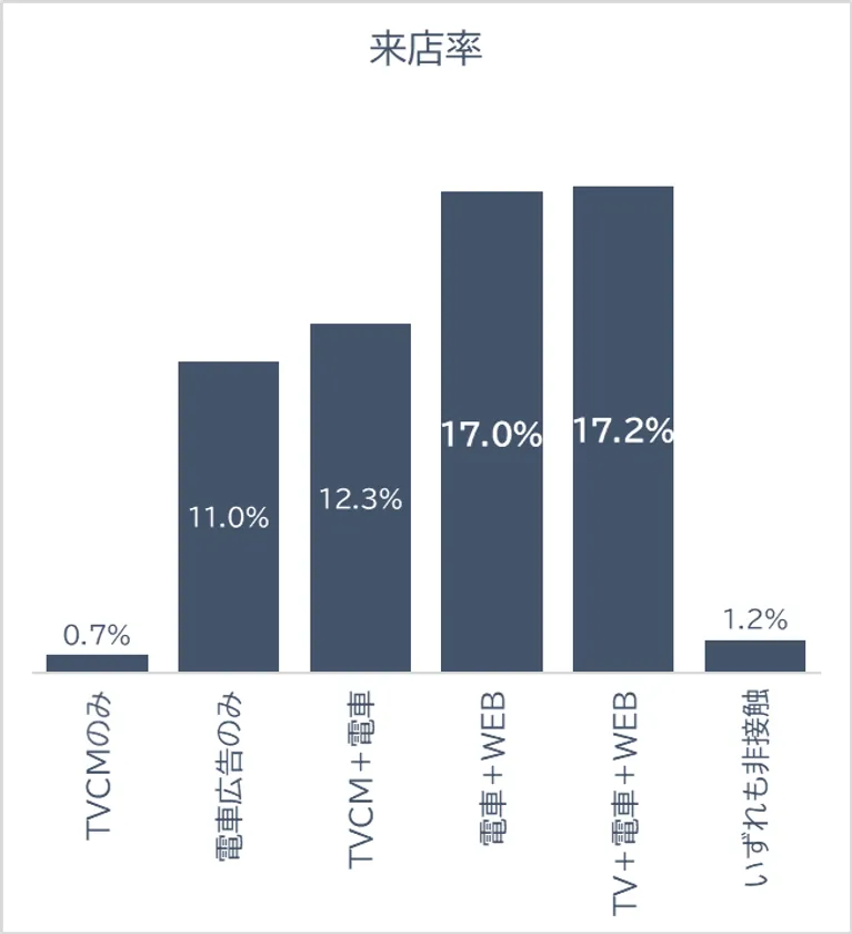 ・分析対象:都市型店舗業態 テレビCM・電車内広告・WEB広告の単体と組み合わせによる店舗来店、自社サイト訪問への効果