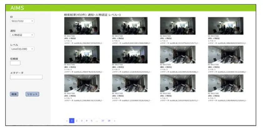 これまで録画機を使った検索では録画ビデオを見返して該当箇所を探しだす大変な労力が必要でしたが、「AIMS」は色々なAI検知情報を整理して、利用者が簡単に、ストレス無く、AIによる検知情報を確認できます。また、検知した情報は特別なデータベースに整理して保管していますので、すぐに検索することができます。