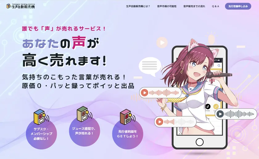 雑談やつぶやきなど「自然な声」を誰でも販売できる WEBサービス「生声自動販売機」が2月2日より本格始動!