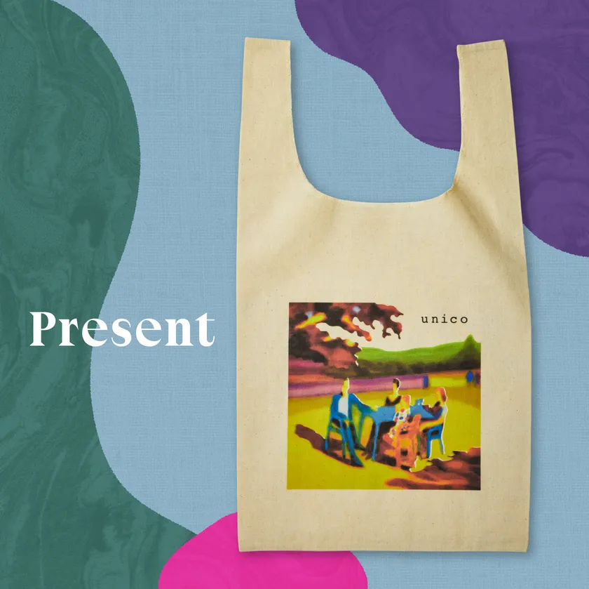 2023年のunico家具カタログのイラストを手掛けた、アーティストの加藤崇亮さんのイラストをプリントしたオリジナルマルシェバッグもご用意。
