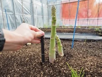 アスパラガス(Asparagus officinalis L.)は、雌雄異株の多年生植物です。近年、太いアスパラガスは、ボリュームや食味などから評価が高まっており、高単価で取引されます。そのため、アスパラガスの1茎重および収量を増加させることができれば、生産者の収益向上につながります。