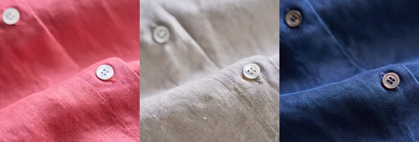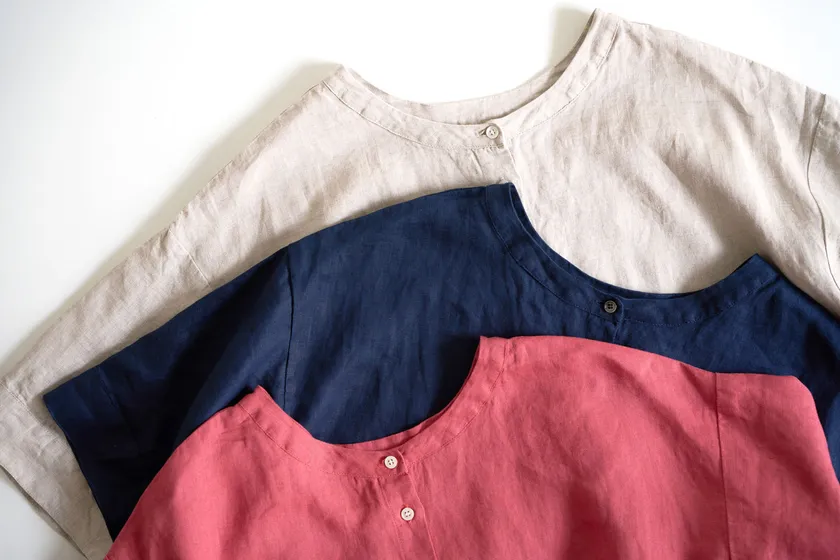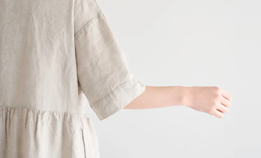 環境や生産者に配慮したオーガニックリネンの生地は、洗うほどに風合いが出て肌なじみが良く、日常のスタイリングにそっと寄り添います。これが、素材の良さへのこだわりです。