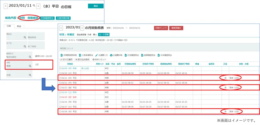 ■自動報告機能(日報休暇自動報告)