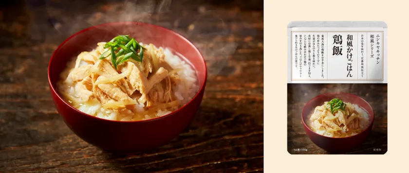 圧搾一番搾りなたね油を加えて素材の味を邪魔しない、コクを出しています。とろみが少ないスープなので、お茶碗一杯分のごはん(約150g)にかけても、最後まで満足感があるように、1袋を170gに設定しています。あっさりとした味わいで、ごはんがさらさらと食べられます。