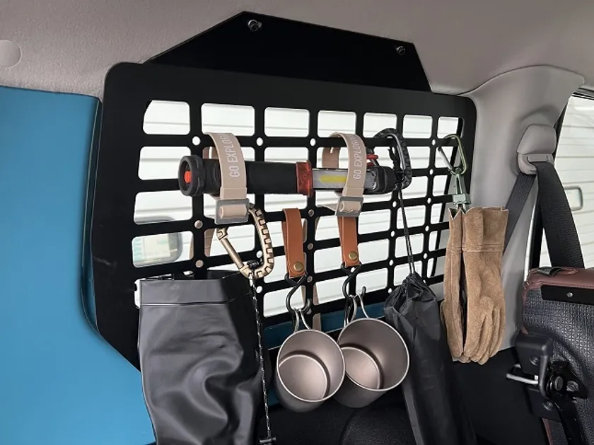 また車中泊する際に良く使う物をラックにひっかけて取りやすくなります。