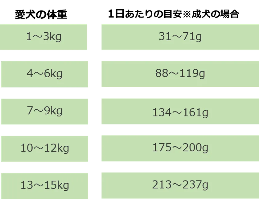 1日当たりの給与量目安を参考に、体質や体重、運動量、便の状態を観察しながら適宜量を加減し、1日2~4回に分けて与えてください。
