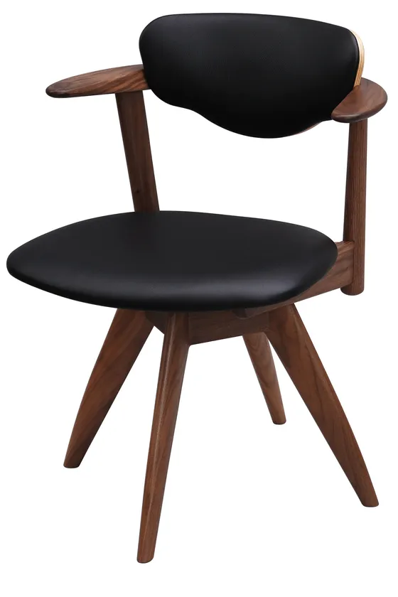 小柄な体型の方向けのコンパクトなアームチェア「Awaza MA02」に回転機能を付けた椅子。回転することで食事から仕事、パソコン作業まで幅広く使用できる。