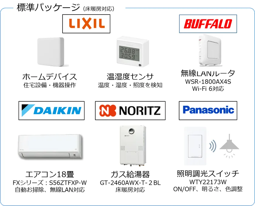 ※2 設置するLDK用エアコン(18畳用)1基、ガス給湯器(床暖房対応)、照明用スイッチ2個及び付属器具等の商品代金もパッケージ価格に含まれます。
