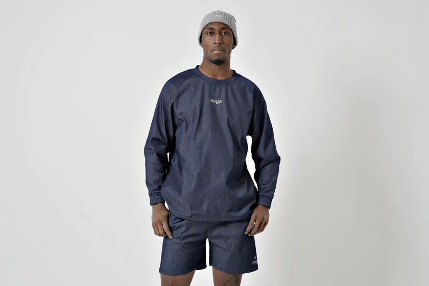 ナイロンをインディゴで染色するという希少な技術で生産された生地を用い、トレーニングに適したアイテムを展開。