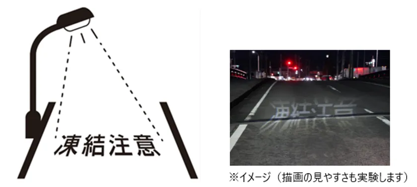裾野市において冬季の路面凍結対策として初の試み LED照明を活用した路面描画で ドライバーに注意喚起を行う実証実験を開始