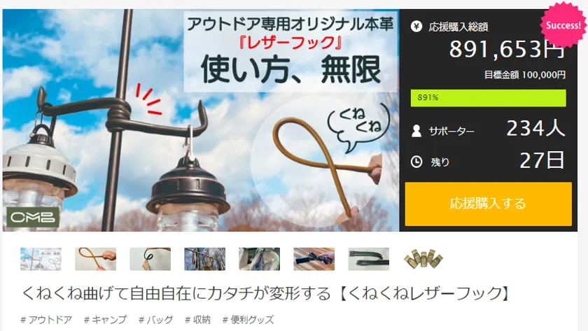 株式会社ワイエス(本社:兵庫県たつの市、代表取締役CEO:柴田 勝則)は、2023年1月29日(日)からMakuakeにて「掛ける立てる束ねる、自由自在にカタチを変えることができるレザーフック」のプロジェクトを公開しており、2月2日(木)時点で目標の885%を超えていることを報告します。