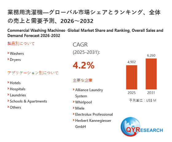 業務用洗濯機の世界市場調査:規模、シェア、成長率(2026-2032年)