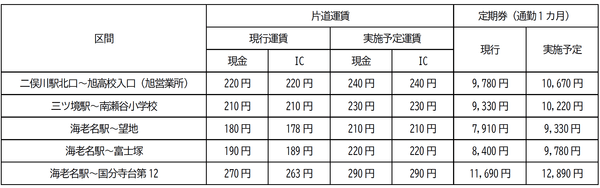 ・横浜新道を走行する系統に対しては、他に有料道路割増運賃(最大40円)を設定