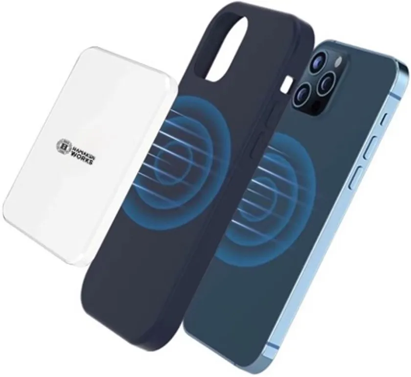 本製品は、磁石で端末と吸着接続するため、MagSafe対応のiPhone12/13/14シリーズやMagSafe対応ケース使用のQiワイヤレス充電スマートフォンで利用が出来ます。また、磁石で位置をずらさずにワイヤレス充電が利用できるケーブルレス充電が最大の特徴です。