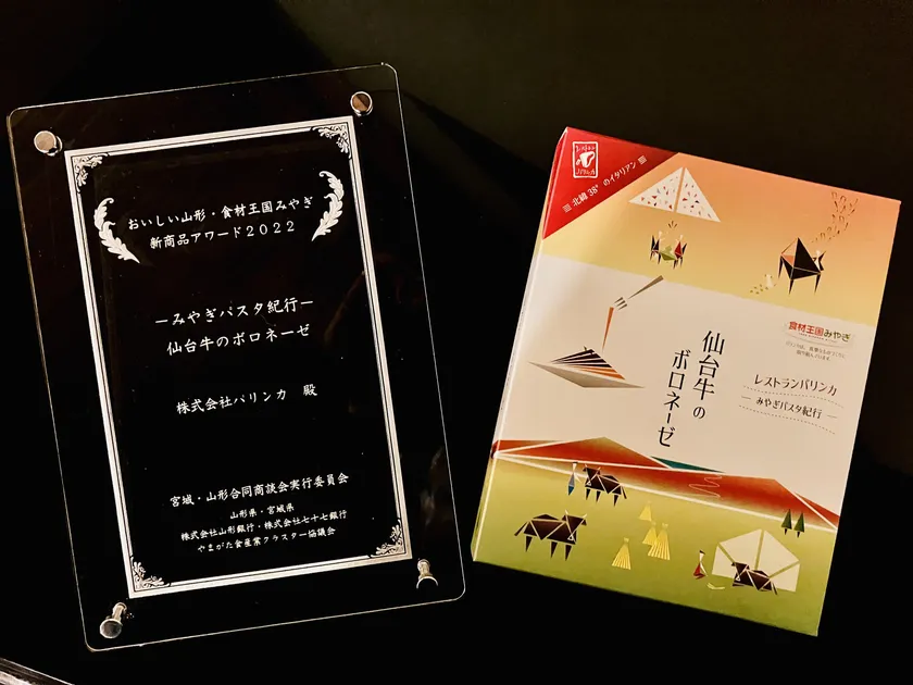 伊達政宗の霊廟 瑞鳳殿参道入口に位置するレストランパリンカ(運営:株式会社パリンカ、所在地:宮城県仙台市)が販売している「みやぎパスタ紀行シリーズ」より“仙台牛のボロネーゼ”が「おいしい山形・食材王国みやぎ新商品アワード2022」を受賞しました。