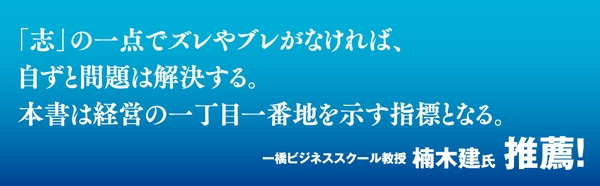 著者は、「志」を「自分たちにできること、自分たち”ならでは”のことで社会に役立つこと」と定義します。私たちのごく身近にある日本的経営観=「志経営」にこそ、これからの社会に必要な答えがあるのではないでしょうか。