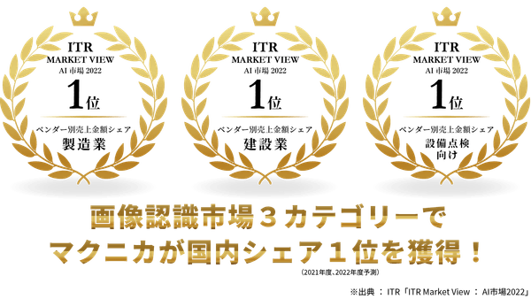 半導体、ネットワーク、サイバーセキュリティ、AI/IoTにおけるトータルサービス・ソリューションプロバイダーの株式会社マクニカ(本社:神奈川県横浜市、代表取締役社長:原 一将、以下マクニカ)は、コンサルティング・調査会社である株式会社アイ・ティ・アール(以下 ITR)が 2022年に発行した市場調査レポート「ITR Market View:AI市場2022」において、当社のAI社会実装を支援するサービスで提供している「Re:Alize Platform」が、国内画像認識の製造業、建設業、設備点検の市場におけるベンダー別市場シェアで、第 1 位(2021年度、2022年度予測)を獲得したことを発表します。