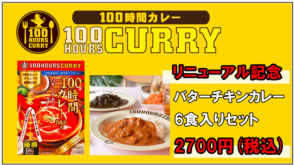 全国50店舗展開しているカレー専門店「100時間カレー」を運営する株式会社アークス(本社:東京都豊島区、代表取締役:米田周平)は通販サイトや販売店でお買い求めいただける100時間カレーのレトルトカレー【バターチキンカレー】がリニューアルすること、それを記念して通販価格から更に10%OFFの特別セットの販売を開始することお知らせします。