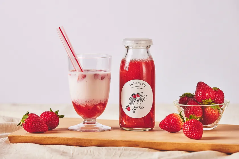 大人気商品「いちごミルクのもと」の作り手である「いちごスイーツ専門店ICHIBIKO(いちびこ)」さんと日本百貨店のコラボ商品。日本百貨店バイヤーが自ら朝獲れミガキイチゴを収穫し、すぐにいちごミルクのもとを製造。その日中に店頭で販売いたします。