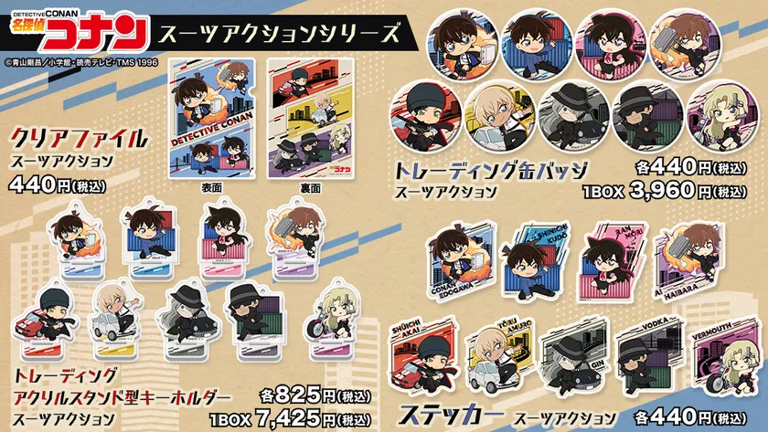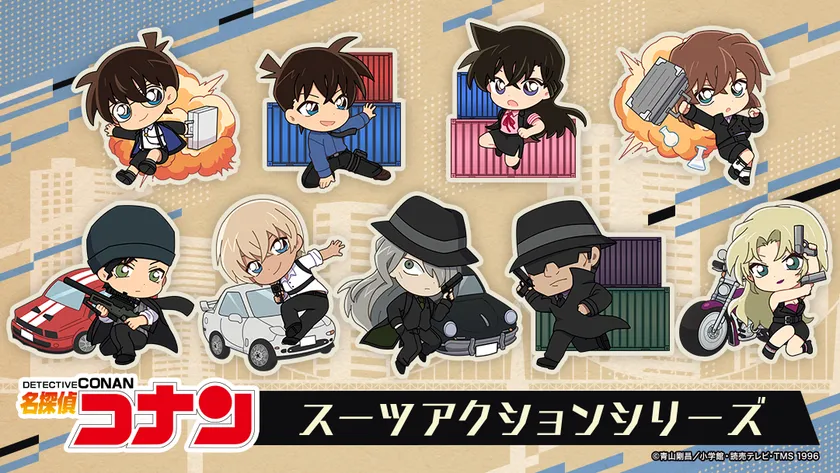 TVアニメ「名探偵コナン」 新規描き起こしデフォルメイラストのグッズが新登場! スパイのような衣装を身にまとい、 動きのあるポーズのキャラクター全9種で展開!
