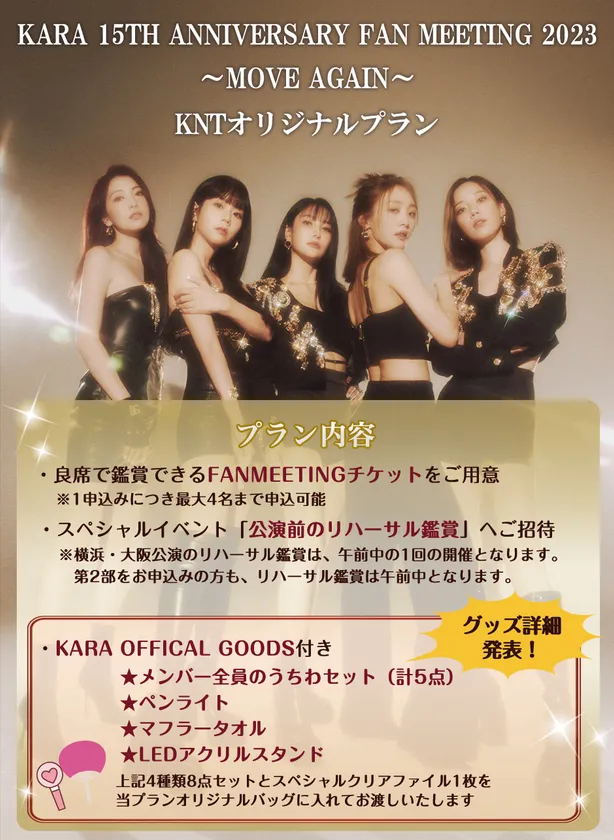 「KARA」の8年ぶりの日本公演 『KARA 15TH ANNIVERSARY FAN MEETING 2023 ~MOVE AGAIN~』、公演前のリハーサル鑑賞や 公式グッズが付いたKNTオリジナルプランを2月9日(木)まで受付中