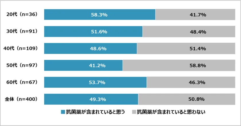 また、年代別では「含まれていると思う」と答えた方が20代では58.3%、50代は41.2%と17.1ポイント差がありました。