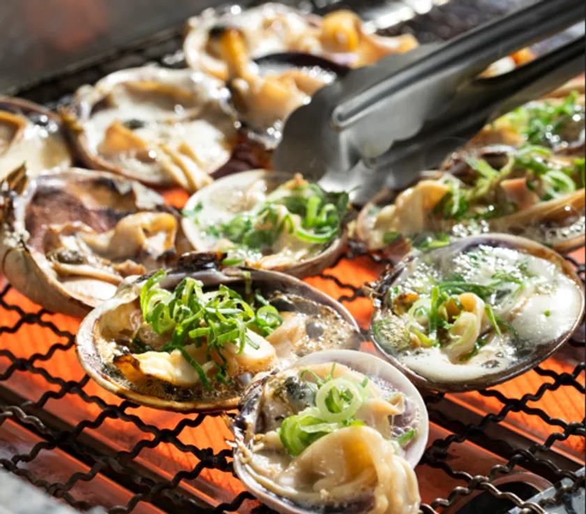 (2) 注文ごとに作る【焼きたてコーナー】では名産の大あさりや牡蠣など、出来立て熱々でご用意いたします。