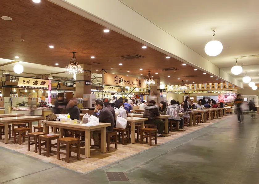 フェスティバルマーケット内おさかな市場エリアの飲食スペースにて、お食事が可能です