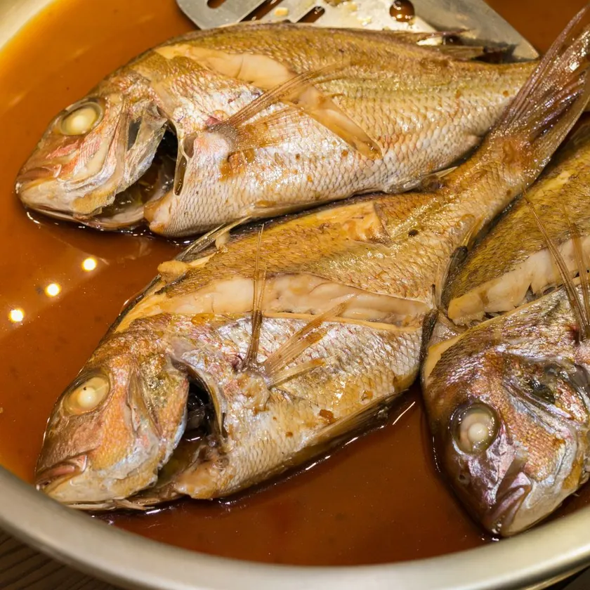ちょっと濃い目の甘辛が漁師好み…煮魚 地だこと若芽の酢の物 地魚の南蛮漬け
