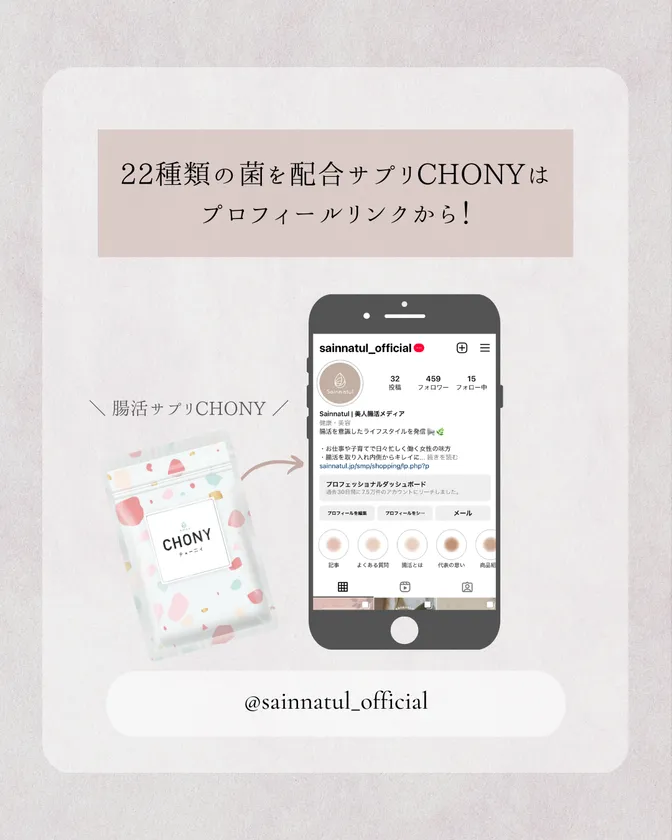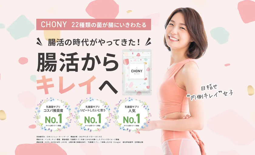 今話題の“乳酸菌サプリNo.1”3冠受賞の腸活サプリ 『CHONY(チョー二イ)』が2月末から アンバサダーを活用したInstagramプロジェクトを開始