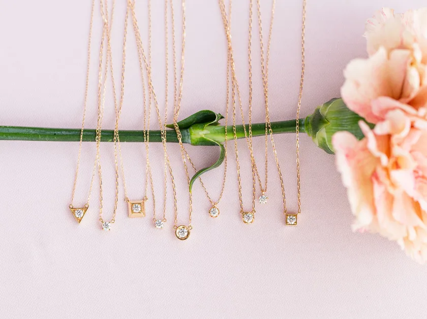 一粒ダイヤモンドネックレスが代表的人気商品で、様々なお客様のニーズに合わせ、幅広いラインアップを取り揃えている。極小のダイヤモンドを顕微鏡を使い留める技術「マイクロスコープ・セッティング」を用いたパヴェを始めとする繊細なデザインも豊富。