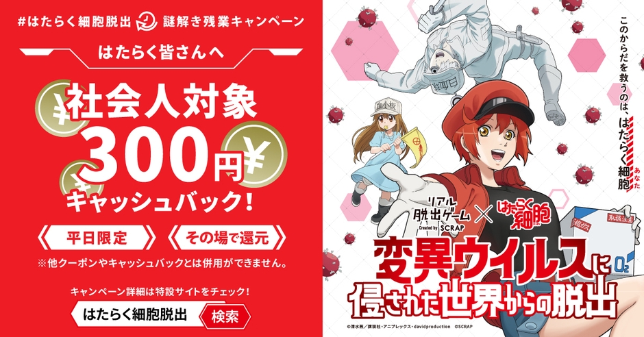 お得なキャンペーンと合わせて、この機会にぜひ体内の細胞の一員となって挑戦するリアル脱出ゲームをお楽しみください。