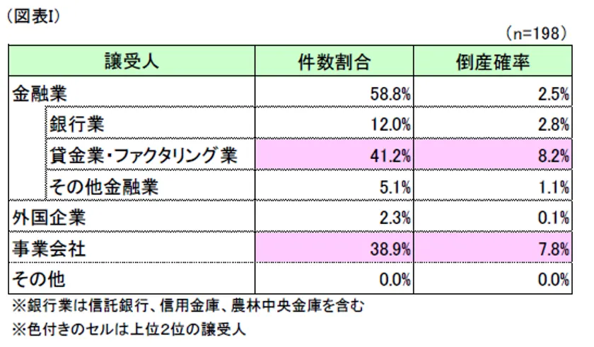 (4)譲受人分析 ~貸金業・ファクタリング業・事業会社の場合に倒産確率が高まる~