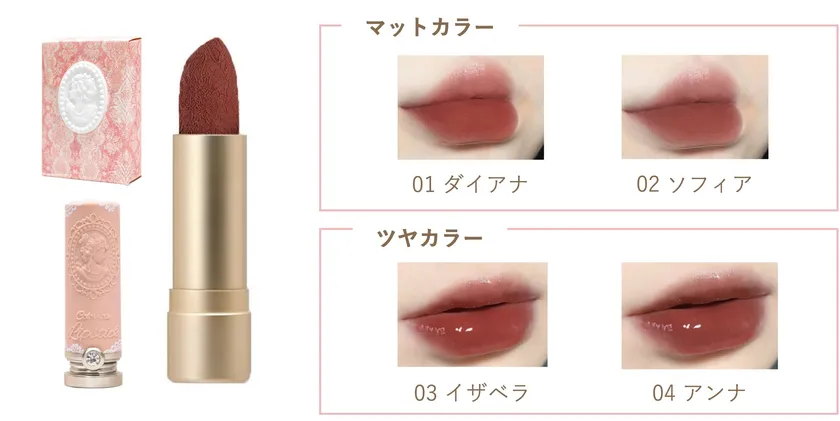 同時に、リップスティックも初登場。マットとツヤの2種類をご用意しました。