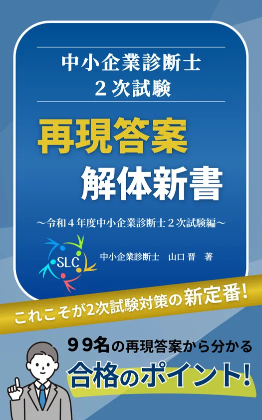 壱市コンサルティング SLC中小企業診断士講座(事務所:東京都板橋区、代表:山口 晋)は、2023年10月29日(日)に実施される、令和5年度中小企業診断士2次試験に向けた、新しい試験対策書籍「中小企業診断士2次試験 再現答案 解体新書~令和4年度中小企業診断士2次試験編~」を2023年8月5日(土)にリリースいたしました。