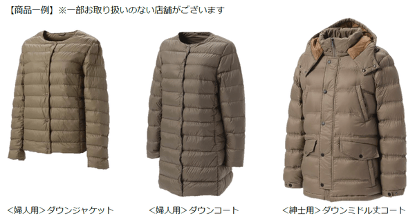 暖かさ・シルエット・着心地にこだわったダウンアウター(婦人用・紳士用)