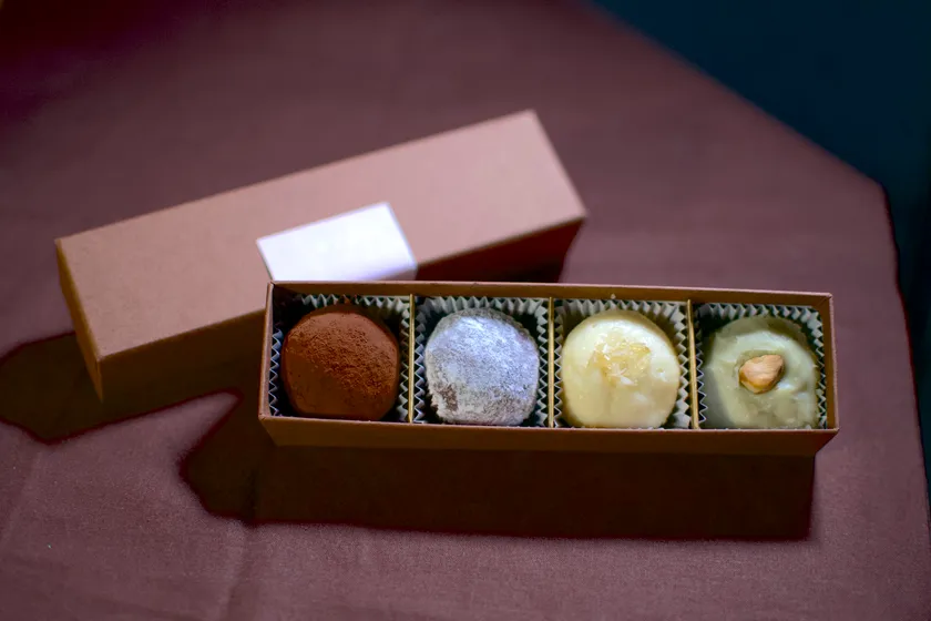 他にもバレンタイン限定メニューとして、「ピスタチオのテリーヌショコラ 1個」や「ふわトリュフ4個入り」の販売を行います。「ピスタチオのテリーヌショコラ 1個」はお一人様でも手軽にお楽しみ頂けるサイズ感です。「ふわトリュフ」は1つ1つ手作業で丸め、冷蔵下でもふわっと、とろける食感の新感覚なトリュフです。アリバビター、マールドシャンパーニュミルク、ピスタチオホワイト、ゆずホワイトが各1個ずつ入っています。