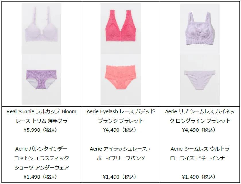 Aerieは常に、すべての女性が自分自身を愛することを奨励しています。今年のバレンタインデーには、Aerieより、あなたを全力でサポートするランジェリー、アクティブウェア、ルームウェアが数々登場。定番のフルカバーブラがロマンチックなカラーでバレンタインムードを盛り上げ、アイラッシュレースブラレットは快適でREAL GOODな気分にさせてくれます。バレンタインカプセルコレクションをAerieの店舗とオンラインストアでチェックし、ありのままの自分を輝かせてください。