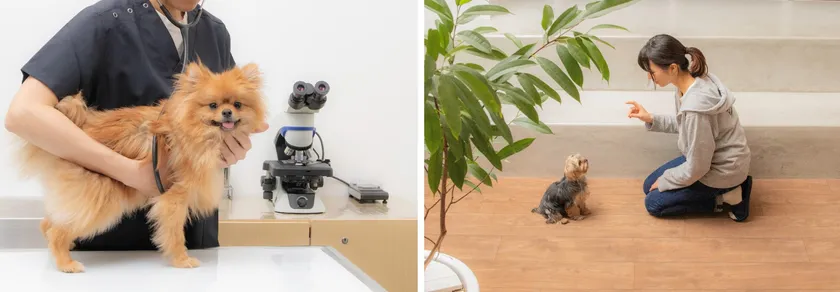 パートナードッグ&キャットをお客様にご紹介するためには、一頭一頭の健康状態をしっかりと把握し、丁寧な心身のケアを行うことが何より大切です。当社では、身体のケアについては健康診断、各種検査および予防接種、予防駆虫、不妊・去勢手術およびスケーリングなど必要な処置・ケアを十分に行い、心のケアや社会化の再教育についても当社の専門スタッフが一頭一頭としっかりコミュニケーションを取りながら実施しています。また、産学連携の一環として、動物専門学校にもトレーニング等で参画いただいています。