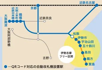 ※QRコード対応の自動改札機設置駅および伊勢志摩フリー区間以外の駅はご利用いただけません。