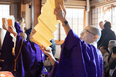 本堂に於きましては、僧侶による『星まつり法要』を開催。本堂内では参拝者の一人一人、僧侶によるお清めの作法をお受けいただけます。