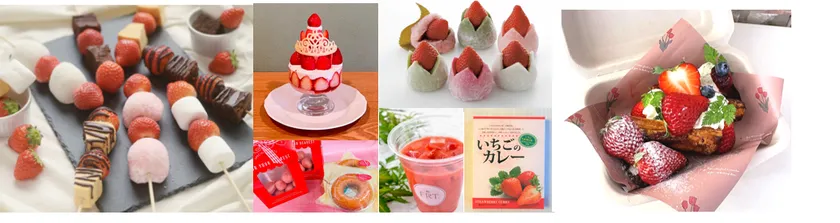 その他にも、北海道のいちご大福専門店「ぽたぽたいちご」のいちご串や、生地にもいちごを練り込んだスペシャルいちご大福、地元の方に愛されるお菓子屋さん「西洋菓子おだふじ」のいちごの焼き菓子など、様々ないちごスイーツが登場。また、お土産にもぴったりな、変わり種のいちごのレトルトカレーやいちごのグッズなども販売します。食べて、見て、心ゆくまでいちごをご堪能ください。